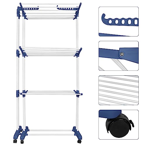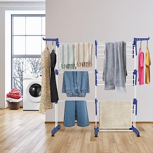 LANTUS Stendino, 3 Livelli Stendibiancheria Verticale Allungabile con Ruote, Acciaio Inossidabile Stendino da Balcone Esterno, Stendipanni per Interno (75-142,5 * 64 * 170 cm-nero + bianco)