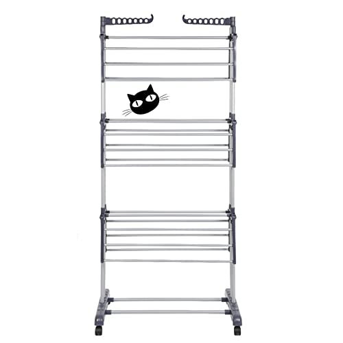 LANTUS Stendino, 3 Livelli Stendibiancheria Verticale Allungabile con Ruote, Acciaio Inossidabile Stendino da Balcone Esterno, Stendipanni per Interno (HJ180261_01 (grigio argento))