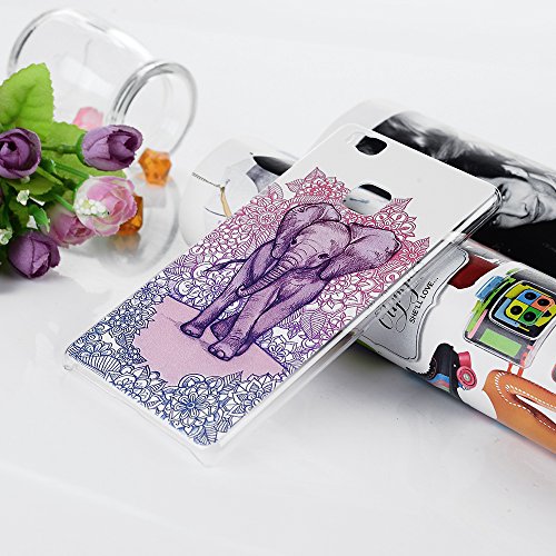 Lanveni 3pcs Custodia Cover Rigida PC Ultra Sottile per Huawei P9 Lite (non per P9) Trasparente Protective Case - Modello Disegno Elefante + Esorcismo Totem + Elefante Fiore