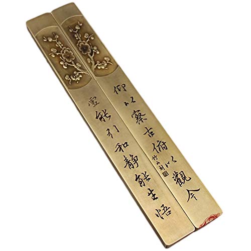 LAOJUNLU Righello a Pressione in Ottone Puro Massiccio Coppia di fermacarte in Rame Fermacarte in Rame Rilievo Fiore di Prugna Taglio a Sigillo Mondo della Lettura Ornamenti Tradizionali Cinesi