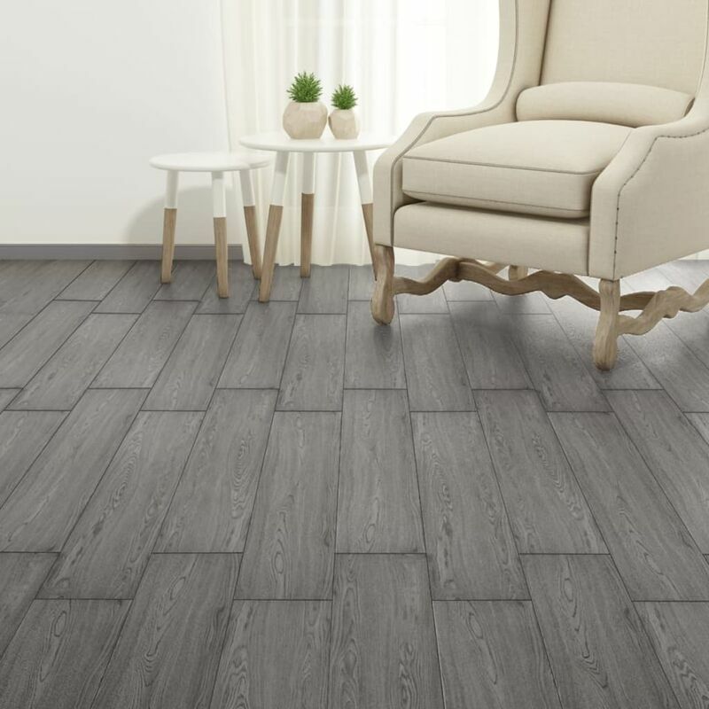 Questo set di doghe autoadesive in PVC, composto da 18 doghe, assomiglia a un set di assi per pavimenti in vero legno duro grazie ai motivi e alle trame che imitano il legno naturale, offrendo allo stesso tempo una maggiore durata e richiedendo meno manutenzione. Materiale premium: realizzate in PVC, queste piastrelle per pavimenti sono resistenti alla muffa, anallergiche, antistatiche, ignifughe, impermeabili, antiscivolo ecc. Facile da installare: queste piastrelle per pavimenti in PVC possono essere facilmente installate su tutti i tipi di superfici solide e piatto grazie al retro autoadesivo Conforme alle norme europee: soddisfano queste norme europee, test al fuoco (EN 13501-1), solidità del colore alla luce (ISO 105-B02), resistenza all'usura (EN 660-2), resistenza allo scivolamento (DIN 51130), resistenza alla pelatura (ISO 24345), impronta residua (ISO 24343-1). Colore: grigio scuro Materiale: PVC Dimensioni (ogni tavola): 91,5 x 15,2 cm (L x P) Superficie totale: 2,51 m²