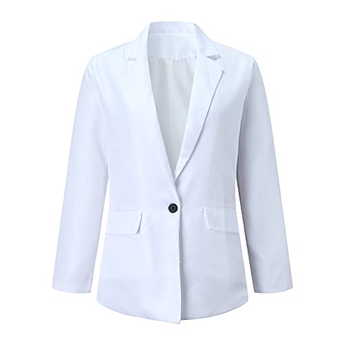 Laonajkd Blazer - Giacca da donna elegante con apertura frontale, per primavera, autunno, scollo a V, casual, con bottoni, in denim, stile vintage, taglie S-XXXL, bianco, S
