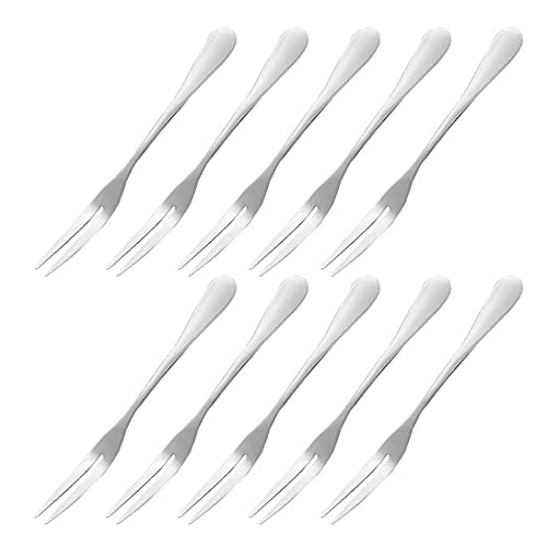 Laoonl - Forchettine in acciaio inox, per aperitivi e dessert, 10 pezzi, forchette per frutta a 2 poli