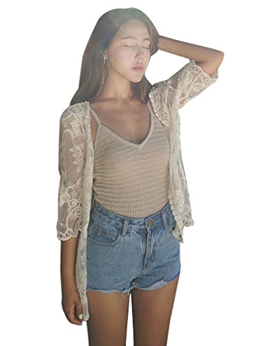 LaoZan Camicia Camicetta Top Tunique Shirt Elegante Corto Copricostumi e Parei Pizzo di Spiaggia Cardigan Broderie Ragazza