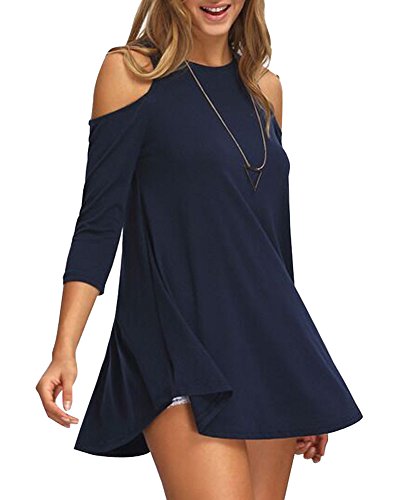 LaoZan Donna Bluse a Mezza Manica Girocollo T-Shirt Sciolto Lunga Camicia Camicetta Tunica Tops Blu Navy L