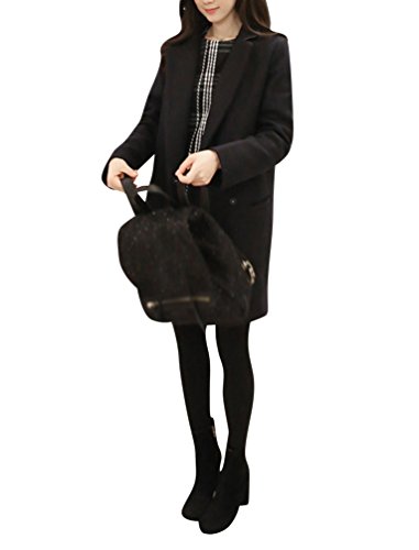 LaoZan Donna Slim Cappotti di Lana Blended Giacca Manica Lunga Open Front Invernali Cardigan Lungo Blazer M Nero