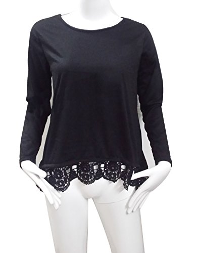 LaoZan Donne Camicie e Magliette Camicetta Delimitata Merletti Collo Rotondo Manica Lunga Nero Small