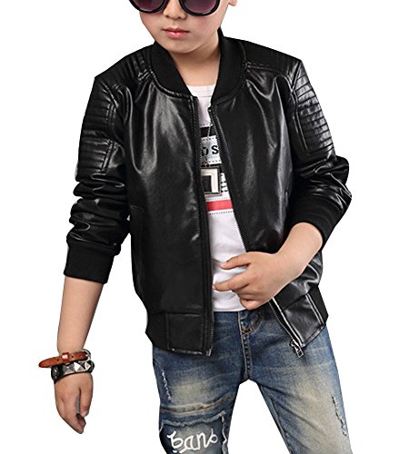 LaoZan Giacche Primavera Autunnali Invernali Bambino Cappotti Ecopelle Manica Lunga Ragazzo Giubbotto Spesso Caldo Nero 140cm