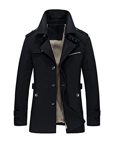 LaoZan Slim Fit Trench Coat Manica Lunga Cappotto Classico Giacca per Uomo L Nero