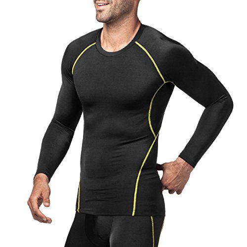 LAPASA Uomo Base Layers T-Shirt Sportiva a Compressione Seconda Pelle -Compressione GRADUALE- Maniche Lunghe Running Palestra Fitness M17 (L(Torace 104-110 cm/Manica 66 cm), Nero+Verde)