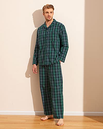 LAPASA Pigiama 100% Cotone Uomo Completo Pantaloni e Maglia a Maniche Lunghe Set Due Pezzi M103 S Verde Scuro e Blu Scuro