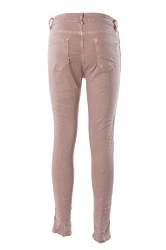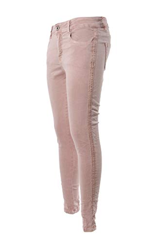 Laphilo - Pantalone Jeans Denim Donna Cinque Tasche e Fianchi Decorati con Mini Strass in Cotone Elasticizzato, Chiusura Anteriore con Bottone e Zip (cod.853) (Rosa, S)