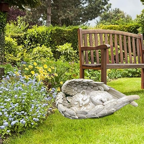 【Memoriale per animali domestici】: rendi un omaggio unico e meravigliosamente realizzato al tuo amato animale domestico con questo gatto addormentato con ali d'angelo. Il suo design elegante e i dettagli intricati lo rendono l'aggiunta perfetta a qualsiasi spazio esterno. Le tue ali sono pronte, ma il mio cuore no.