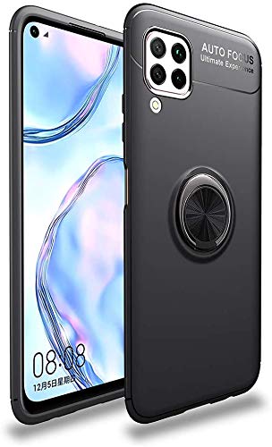 Lapinette Cover Compatibile con Huawei P40 Lite Anello Supporto - Cover P40 Lite Anello 360° - Custodia P40 Lite Magnetica Supporto 360° - Cover Antiurto Morbida Silicone Nero