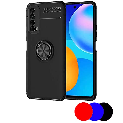 Lapinette Cover Compatibile con Huawei P Smart 2021 Anello Supporto - Cover P Smart 2021 Anello 360° - Custodia P Smart 2021 Magnetica Supporto 360° - Cover Antiurto Morbida Silicone Nero