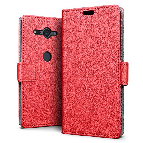 Lapinette Cover a Libro Compatibile con Sony Xperia XZ2 Compact in Pelle - Cover a Livro Xperia XZ2 Compact - Custodia Xperia XZ2 Compact Portafoglio - Cover Flip Chiusura Magnetica Rosso