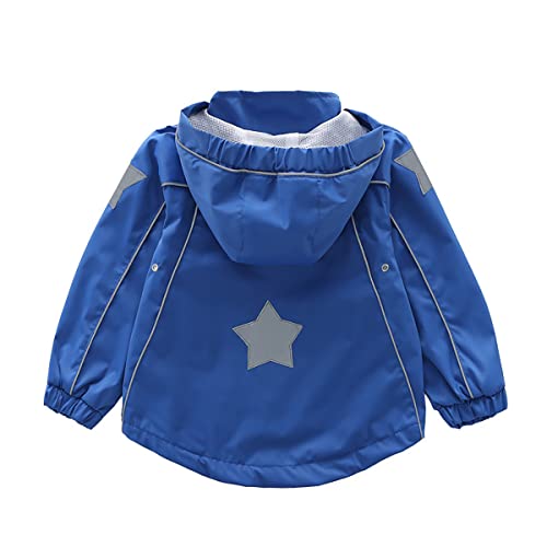 LAPLBEKE Bambine Impermeabile Antivento Giubbotti-Bimba Stampa Stella Cappuccio Giacche-Bambini Primavera Autunno Cerniera Giacca Fodera in Pile Esterni Blu 12-24 Mesi