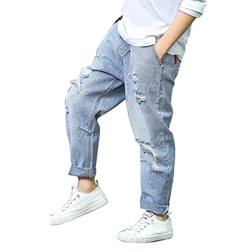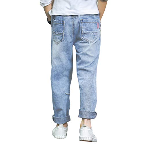 LAPLBEKE Bambino Cotone Strappato Jeans - Bambini Sciolto Denim Pantalone - Ragazzo Ragazzi All'aperto Scuola Elastico Vita Pantaloni Primavera Autunno Blu 4-5 Anni
