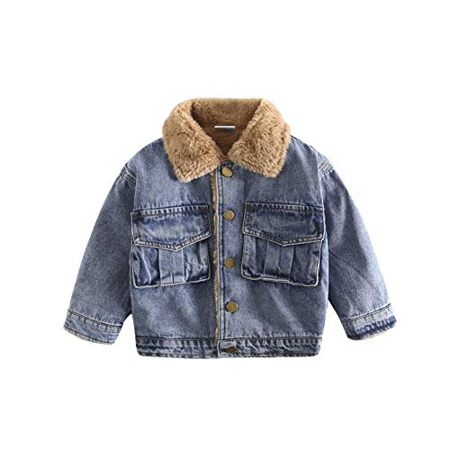 LAPLBEKE Bimbo Bimba Collo di Pelliccia con Risvolto Denim Giacca - Bambino Bambina Caldo Jean Cappotti - Ragazzo Ragazza Autunno Inverno Fodera in Pile Giubbotti Giacche Blu Denim 2-3 Anni