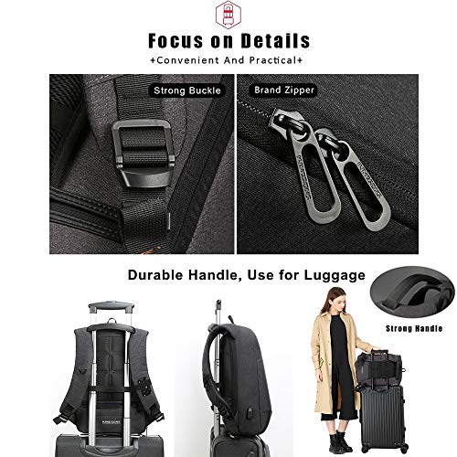 Laptop Backpack, Kingsons Business Travel Computer Bag with USB Charging Port Anti-Theft Water Resistant for 15.6-Inch Laptop (13.3 Inch, Dark Grey)