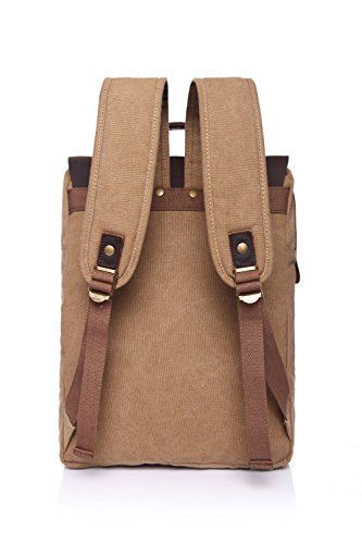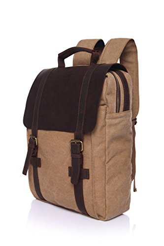 KAKA Laptop Backpack Version Unisex Vintage Canvas Genuine Leather Travel School Bag(Khaki)