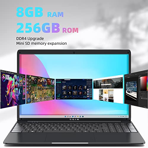 SGIN - Laptop da 15,6 pollici, 8 GB RAM, SSD 256 GB, Windows 11, Celeron Quad-Core, fino a 2,8 GHz, 1366 x 768, 2,4/5,0 G WiFi, 7000 mAh, Bluetooth (layout della tastiera italiano non garantito)