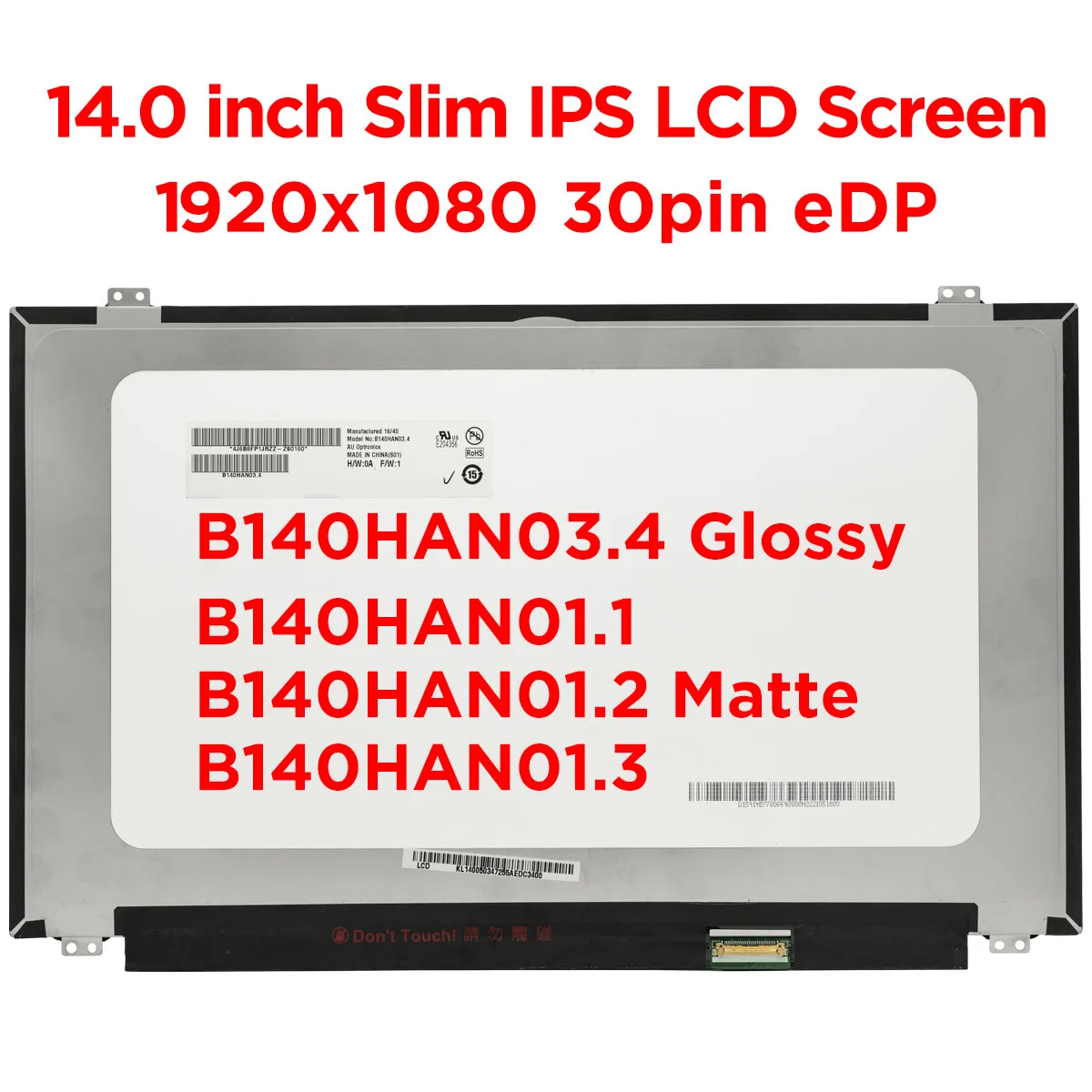 14.0" Laptop Screen B140HAN03.4 Glossy B140HAN01.1 B140HAN01.2 B140HAN1.3 NV140FHM-N62 Matte LCD Display IPS 1920x1080 30pin eDP
