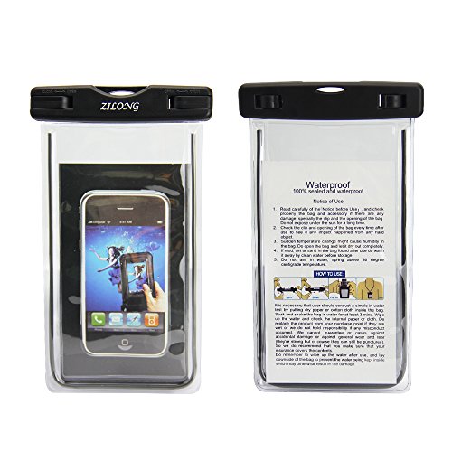 Laptop universale impermeabile/Zilong IPX8 sacchetto impermeabile custodia impermeabile con touch Responsive finestre trasparenti, luminoso per Apple iPhone 7,7 Plus, 6 Plus, 6S Plus, 5/5S/ C, Samsung Galaxy S7/S6, Note 5/4, HTC, LG, Sony, Nokia, Motorola per cellulari fino a 15,2 cm per pesca, nuoto, snorkeling, kayak, vela nero, Universal Waterproof Phone Bag with Armband