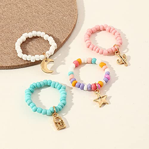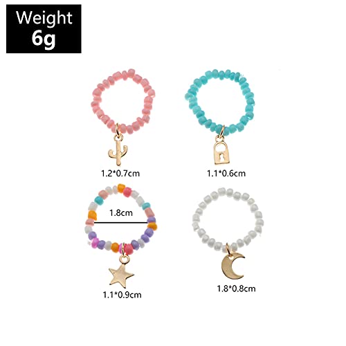 Larancie Anelli Donna Set Color Beaded Nocche Anelli Carini Stella Luna Ciondolo impilabile Thumb Boho Anelli Gioielli Per Donne e Ragazze 4PCS