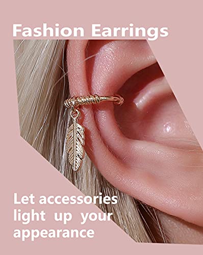 Larancie Orecchini pendenti con piume Clip per orecchio Orecchini vintage Gioielli Boho Moda per donne e ragazze (Oro)