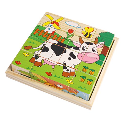 Larcele 16 Blocchi Piccolo Pezzi Bambini Che costruiscono 3D Puzzle in Legno PTTP-02 (Pollame)