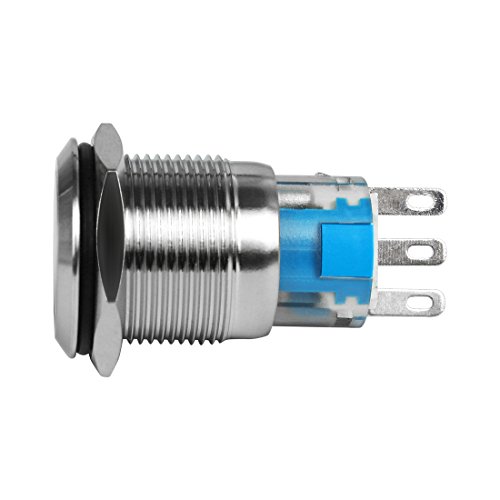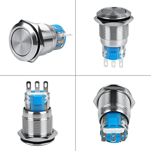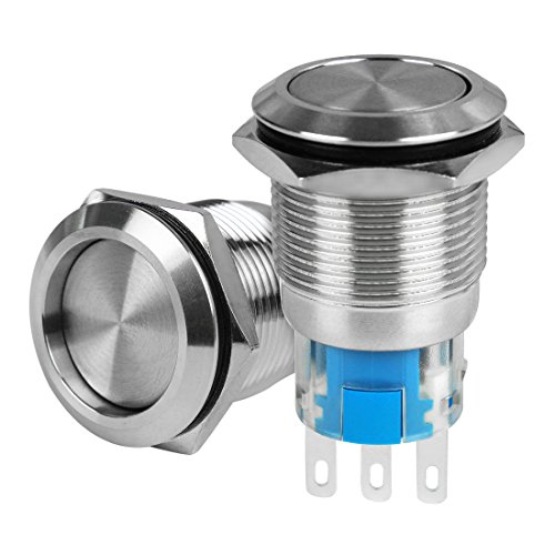 Larcele 19mm Interruttori a pulsante,DIY Autobloccante Interruttore Metallo,Impermeabile,5 pezzi JSANKG-05(Testa Piatta)