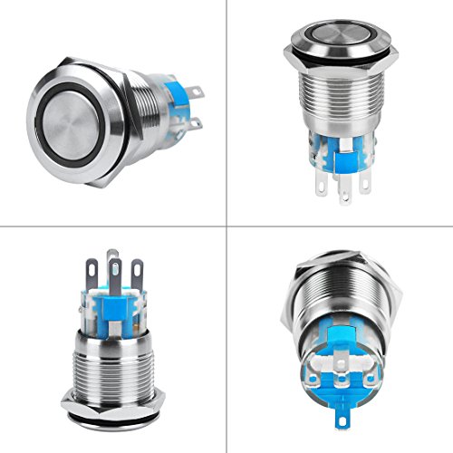 Larcele 19mm Interruttori a pulsante con Indicatore Luce,DIY Autobloccante Interruttore Metallo,Testa Piatta,Impermeabile,5 pezzi JSANKG-07 (Luz Verde)