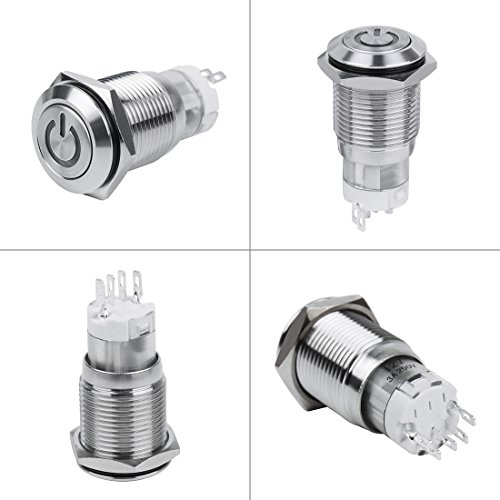 Larcele 5 pezzi Impermeabile Non Momentaneo Metallo Spingere Pulsante Interruttore con Indicatore Luce JSANKG-03 (Lume Blu,16mm)