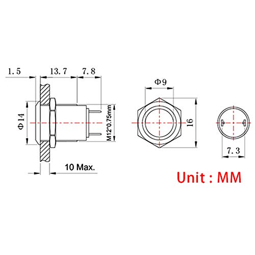 Larcele Pulsante di Ritorno Automatico Momento Bottone in Metallo Resistente all'acqua jsankg-01 12mm 5 Pezzi