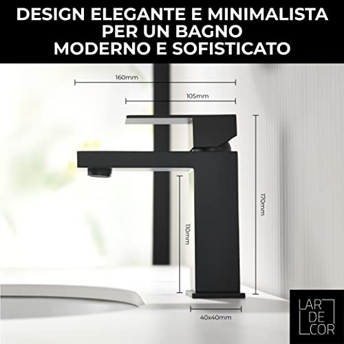 LARDECOR - Rubinetto da Lavabo in Acciaio Inox, Miscelatore Monocomando per Acqua Calda e Fredda, Lavello Minimalista Senza Piombo, Tubi Interni Flessibili, Consumo Ridotto (Tamul, Black)