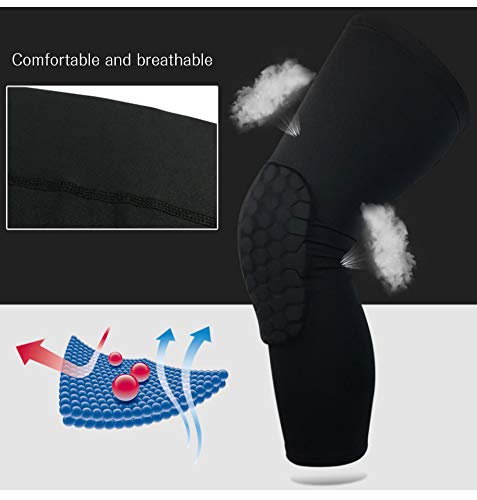 Lardrok, Ginocchiere da basket traspiranti e protettive, lavorate a nido d'ape esagonale, a compressione, lunghe, per ginocchia e gambe, per sport e pallavolo