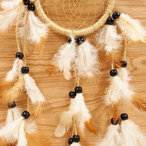 Lares Domi Daytime Lullaby Handmade Bohemian Dreamcatcher, Circular Net with Feathers Wall Hanging Decoration Decor Ornament Craft (4.4 x 14.6 in.)
