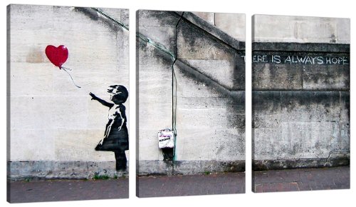 Set of 3 Large Banksy Canvas Wall Art Prints UK Red Balloon Girl 3050 by Wallfillers
