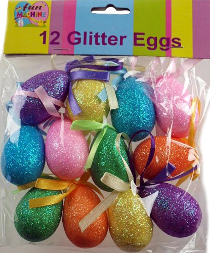 12 x Large Glitter Craft Easter Eggs - Hanging Decorations For Bonnets And Hats by DP