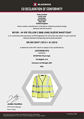 Conforme agli standard di sicurezza europei EN471 Classe 3 standard britannici