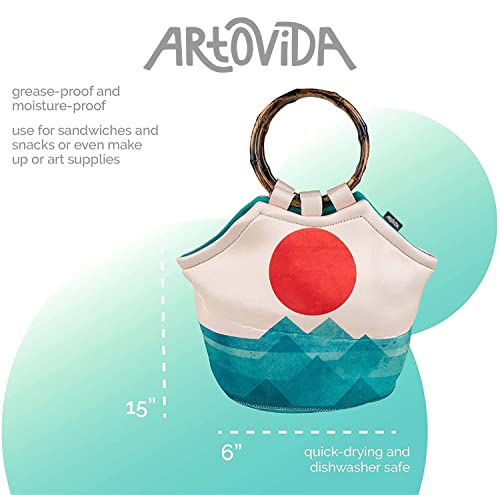 Large Neoprene Lunch Bag Purse by ART OF LUNCH - 11 X 15 X 6 Reusable Insulated Lunch Bag with Added Inside Pocket - Design by Budi Kwan (Indonesia) - The Ocean, the Sea, the Wave by Art of Lunch