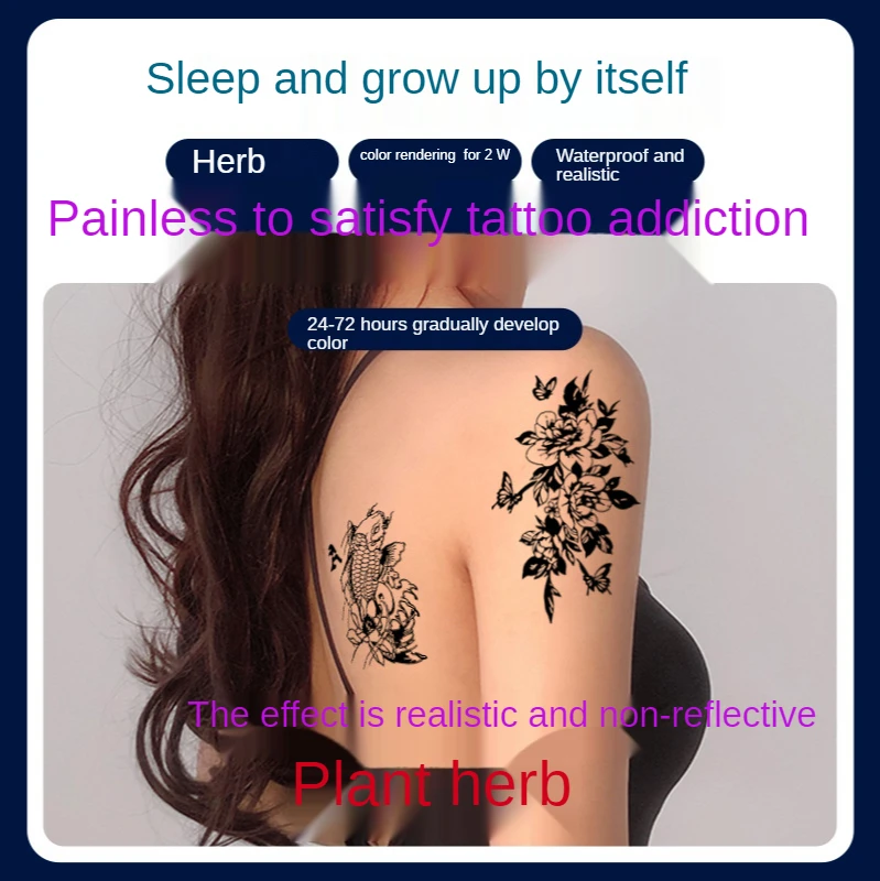 Large patterned herbal tattoo sticker waterproof,durable semi-permanent non-reflective simulation sticker, temporary tattoo