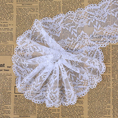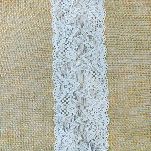 LaRibbons 100 mm di Larghezza Floreale Elastico Pizzo del Nastro del Tessuto per Sposa Decorazione, Bianco 5 Yard