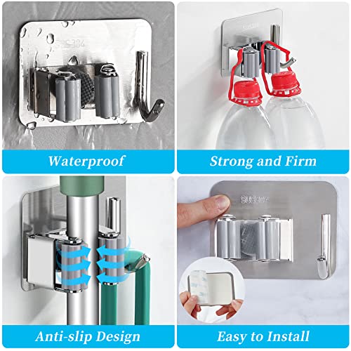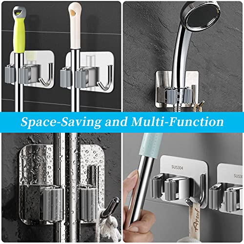 Larkumio Porta Scope Parete, 4 Pezzi Portascope da Muro Appendibile Acciaio Inossidabile Autoadesivi Appendi Scope a Muro Attaccapanni da Muro per Bagno, Cucina, Giardino, Garage, Armadio (Argento)