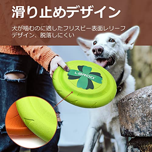 [Il Perfetto Frisbee Giocattolo per Cani] - Set da 2 pezzi arancione + verde, il diametro del frisbee è di Ø24.5cm. LaRoo Frisbee per Cani è un giocattolo interattivo da lanciare, catturare, afferrare, tirare e tirare alla fune con i cani. È costituito da aerodinamica e design ad anello, che lo rendono facile da lanciare molto lontano.