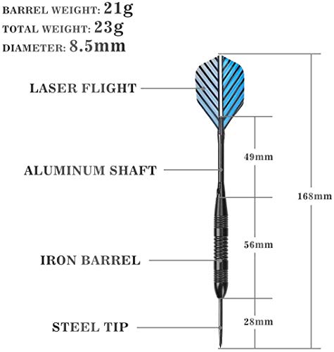 HAVE MORE ACCURACY AND DURABILITY WITH THESE STURDY STEEL TIP DARTS: Unique three-section grip textures in metal barrel enhancing your control and stability. 23g total weight of darts and thick flights make them fly straight with precision.Carving Aluminium Shafts keep away from shaft broken problem.12pcs rubber o-rings are spare in the box prevent the aluminum shaft from loosening after long time use.
