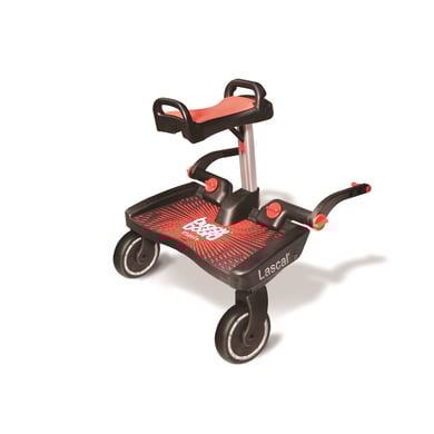 Il migliore amico per le passeggiate in famiglia Il BuggyBoard Maxi+ è composto dal ben noto BuggyBoard Maxi e dal BuggyBoard Saddle ed è disponibile solo come set. Per bimbi stanchi di camminare Il BuggyBoard™ è intelligente, sicuro e pratico ed è perfetto per i bambini dai 2 ai 6 anni di età fino a 22 kg. Con questo BuggyBoard il bambino sarà tra le tue braccia per una maggiore sicurezza nei posti più affollati. Appena il bimbo è stanco può salire sulla pedana e farsi portare con facilità. Accessori per passeggini Il BuggyBoard® di Lascal è universale e facile da usare, si adatta facilmente al passeggino e offre ai bambini stanchi un comodo e sicuro passaggio. Con un intelligente sistema Lascal Easy-Fit, è possibile fissare la pedana a quasi tutti i passeggini singoli o doppi. Questi includono carrozzine, tricicli, sistemi di viaggio e passeggini. BuggyBoard® rende la vita più facile Il BuggyBoard® di Lascal posiziona il bambino in modo sicuro tra le braccia e garantisce la sicurezza in aree affollate e trafficate. Se il tuo bambino è troppo stanco per camminare, BuggyBoard™ rende la vita più facile. Dettagli del prodotto: Peso massimo: 20 kg Ganci regolabili fino a 22,5 cm Si fissa facilmente al passeggino Regolabile in larghezza (31-54 cm) Regolabile in altezza (max. 35 cm altezza) Superficie di appoggio anti-scivolo Si richiude facilmente Con ruote gommate Ruote più grandi (15 cm) Il sedile si monta e smonta facilmente Il sedile può essere ripiegato quando non è in uso