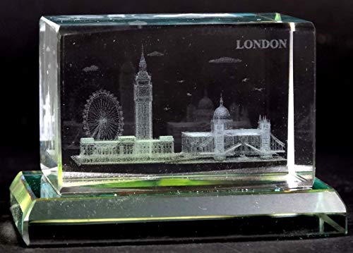 Laser Art Crystal - Souvenir di Londra con Buckingham Palace, Big Ben, Tower Bridge, London Eye e St. Paul's, orizzontale con base colorata, 48600