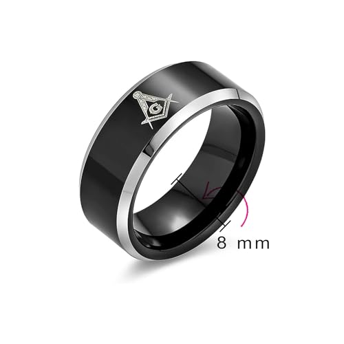 DESIGN D'URTO - Questo splendido anello a fascia per uomo è caratterizzato da un motivo massonico nero con emblema al centro, per aiutarvi a celebrare il vostro orgoglio di fratellanza con stile.